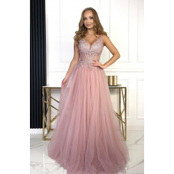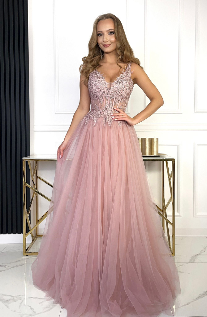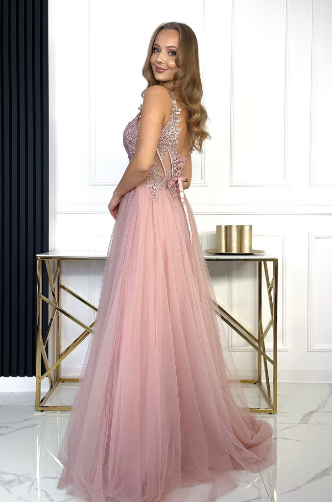 STARORUŽOVÉ SPOLOČENSKÉ ŠATY S TYLOVOU SUKŇOU