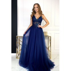 TMAVOMODRÉ SPOLOČENSKÉ ŠATY S TYLOVOU SUKŇOU