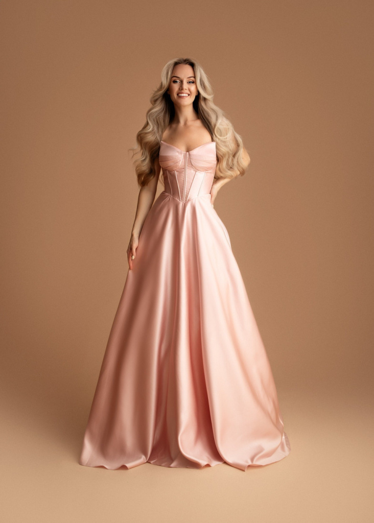 RUŽOVÉ DLHÉ SPOLOČENSKÉ ŠATY S KORZETOM RUTH