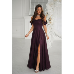 FIALOVÉ TRBLIETAVÉ ŠATY SPUSTENÉ NA RAMENÁ DRAPA