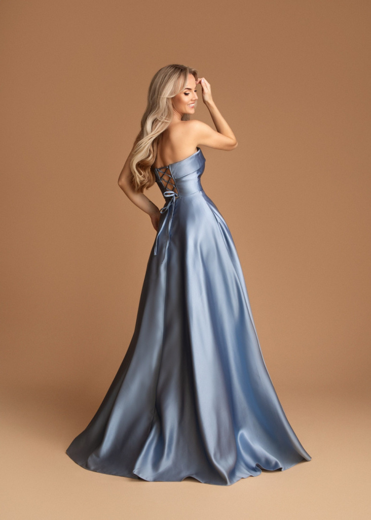 SVETLOMODRÉ DLHÉ SATÉNOVÉ SPOLOČENSKÉ ŠATY ALIZEE