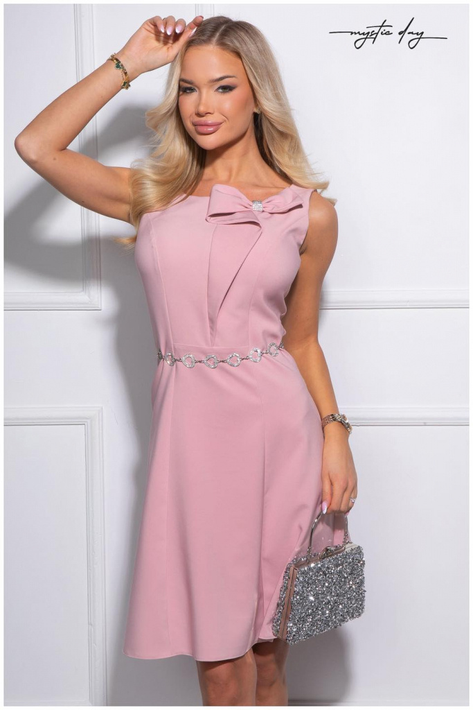 Tieto štýlové šaty v jemnom pudrovo-ružovom odtieni sú ideálnou voľbou pre ženy, ktoré hľadajú nadčasovú eleganciu s jemným romantickým prvkom. Čisté línie a precízne tvarovaný strih krásne zvýraznia ženskú siluetu, zatiaľ čo ozdobná mašľa pri výstrihu dodáva modelu sofistikovaný a výnimočný vzhľad.
